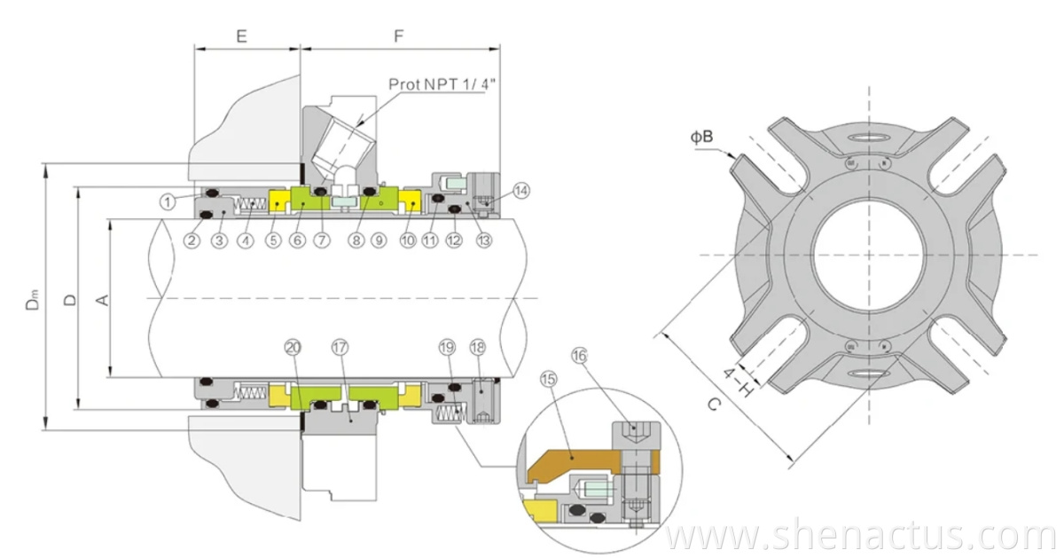 | 6 | Inboard Stationary Face | SSIC/TC | 16 | Clip Screw | 316SS |